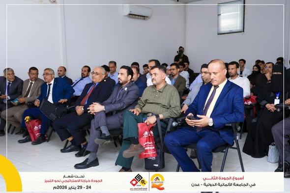 في أول أيام أسبوع الجودة الثاني في الجامعة الألمانية الدولية – عدن، نظّمت الجامعة محاضرة علمية نوعية عبر منصة زوم، قدّمها البروفيسور الدكتور مهدي مسعود، أستاذ علوم الحاسوب بجامعة الطائف – المملكة العربية السعودية، وعضو IEEE، ومقيّم برامج اعتماد ABET، بحضور رئاسة الجامعة وقياداتها الأكاديمية، وعمداء الكليات، وأعضاء هيئة التدريس، وطاقمها الإداري، إلى جانب مشاركين من داخل الجامعة وخارجها من المهتمين بمجال الجودة والاعتماد الأكاديمي.