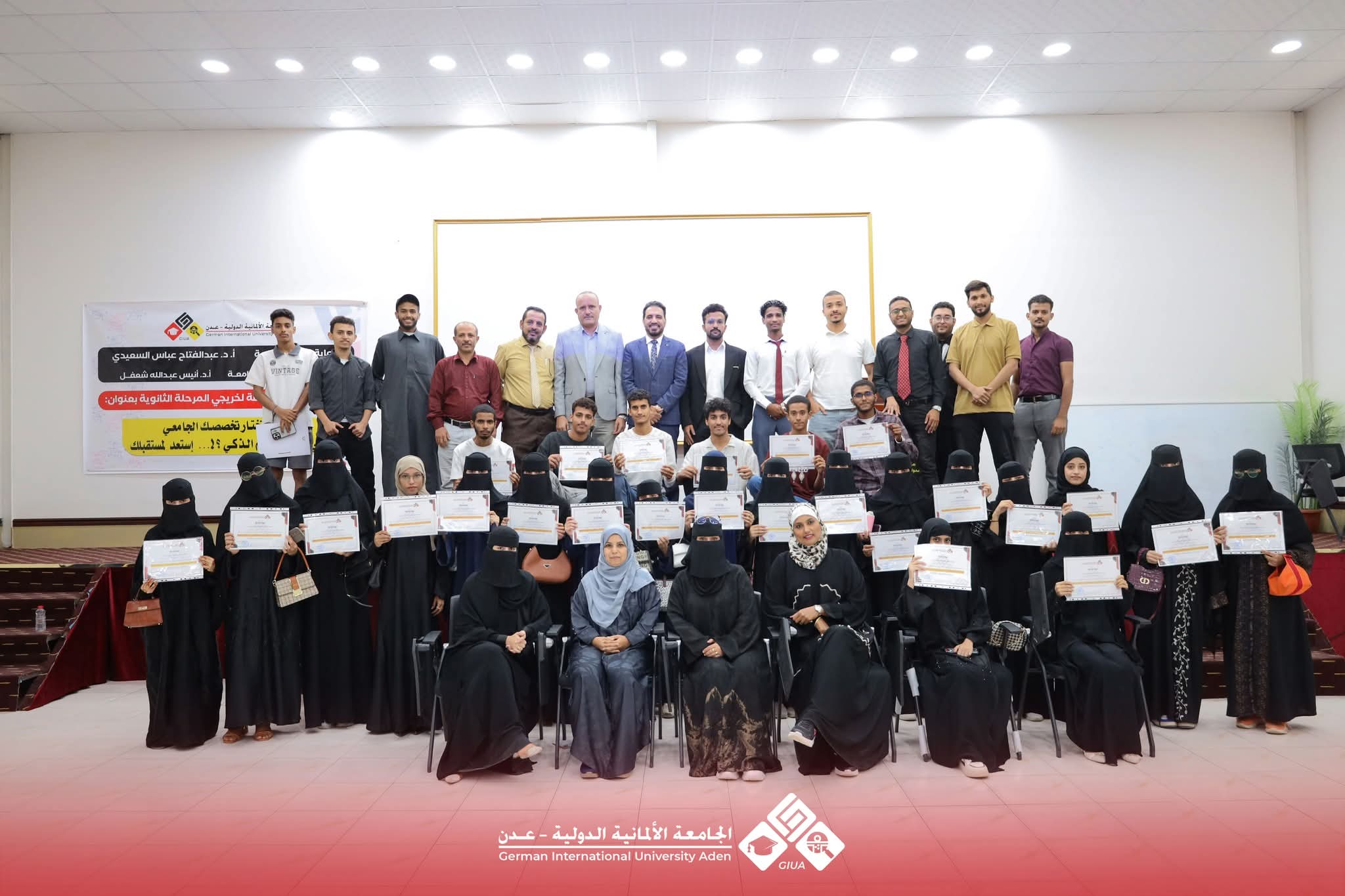 نظمت الجامعة الألمانية الدولية عدن اليوم ندوة إرشادية مخصصة لخريجي المرحلة الثانوية بعنوان: كيف تختار تخصصك الجامعي في عصر التعلم الذكي؟ تحت شعار استعد لمستقبلك برعاية الأستاذ الدكتور عبد الفتاح عباس السعيدي رئيس الجامعة وبإشراف نائب رئيس الجامعة الأستاذ الدكتور أنيس عبدالله شعفل.