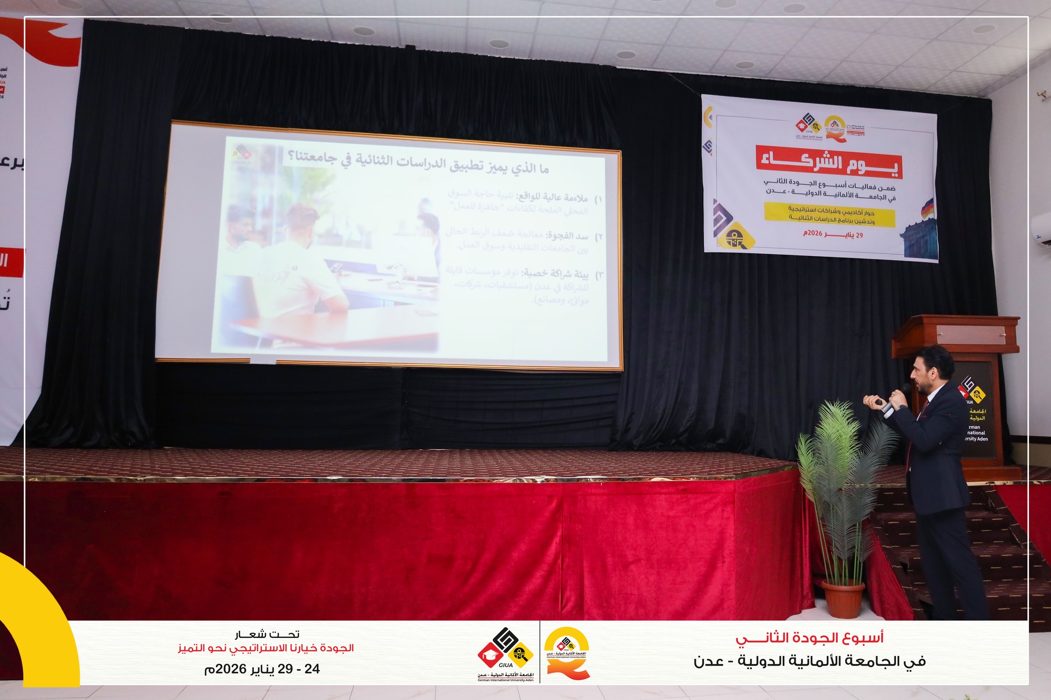 في أجواء أكاديمية متميزة، اختتمت الجامعة الألمانية الدولية – عدن فعاليات أسبوع الجودة الثاني بمحاضرة علمية قدّمها الأستاذ الدكتور عبدالفتاح السعيدي رئيس الجامعة، بعنوان:
