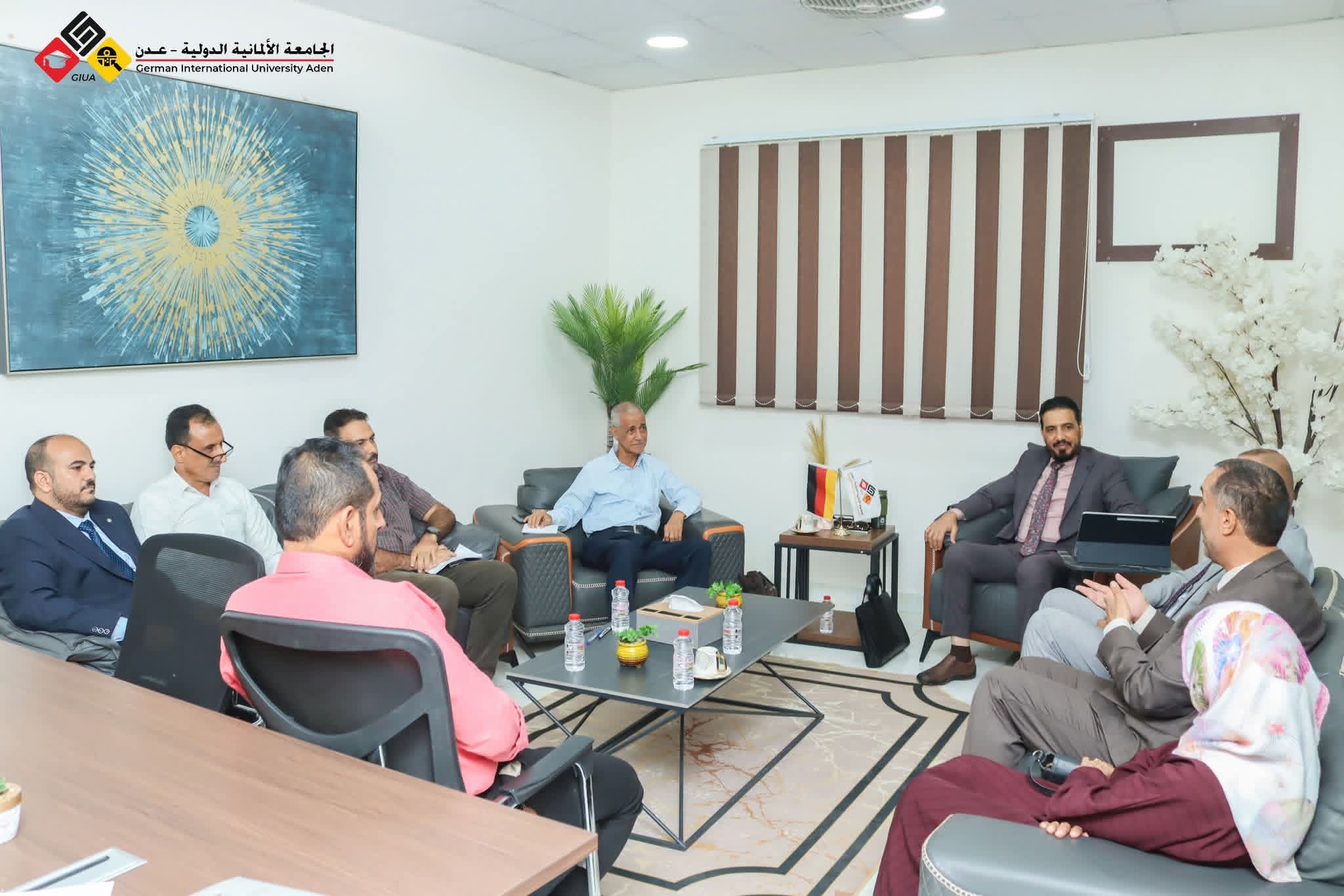 استقبل معالي رئيس الجامعة الألمانية الدولية – عدن، أ.د. عبدالفتاح السعيدي، ونائب رئيس الجامعة أ.د. أنيس عبدالله شعفل، إلى جانب د. محمد العياشي مدير عام مستشفى عدن الألماني الدولي، صباح اليوم في مقر الجامعة، وفد المجلس الطبي الأعلى برئاسة أ.د. أحمد سعيد المنصوب عضو المجلس الطبي الأعلى ورئيس لجنة التعليم الطبي والتدريب المهني المستمر، وذلك في إطار برنامج زيارات المجلس لمؤسسات التعليم والمستشفيات الحكومية والخاصة. وتعد هذه الزيارة أول زيارة للمجلس إلى الجامعات الأهلية في اليمن، حيث اختار المجلس أن تكون الجامعة الألمانية الدولية محطته الأولى تقديرًا لمستواها المتميز وإمكاناتها الأكاديمية والطبية.