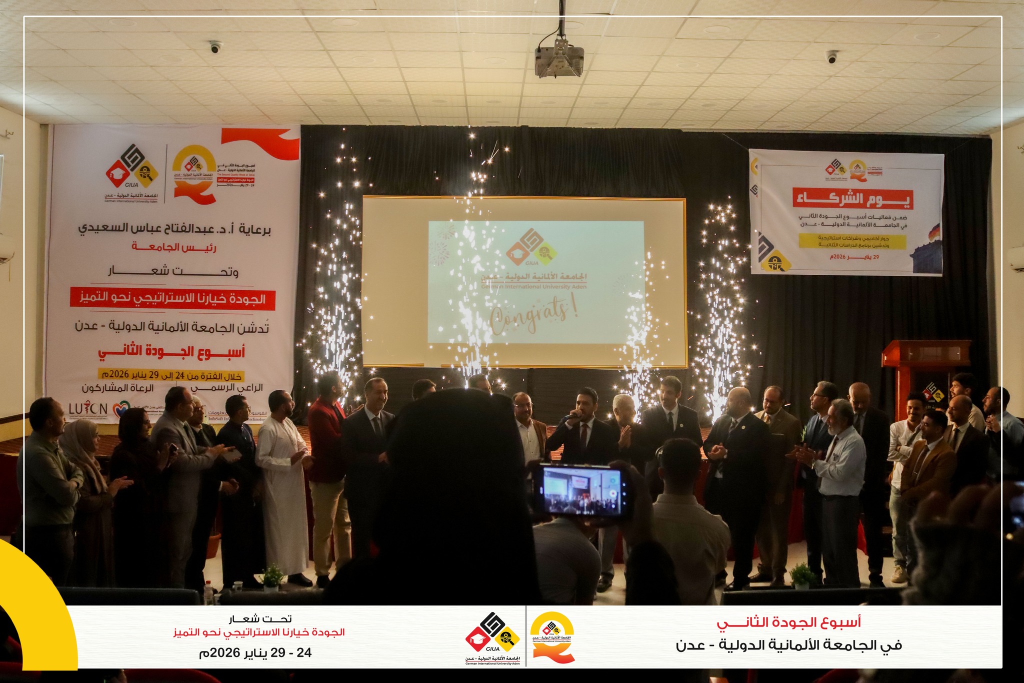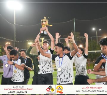 أعلن الأستاذ الدكتور عبدالفتاح عباس السعيدي رئيس الجامعة الألمانية الدولية – عدن، عن تدشين برنامج الدراسات الثنائية في الجامعة، وذلك ضمن ختام فعاليات أسبوع الجودة الثاني، في خطوة تعكس توجه الجامعة نحو تطوير برامجها الأكاديمية وتعزيز شراكاتها مع مؤسسات سوق العمل.