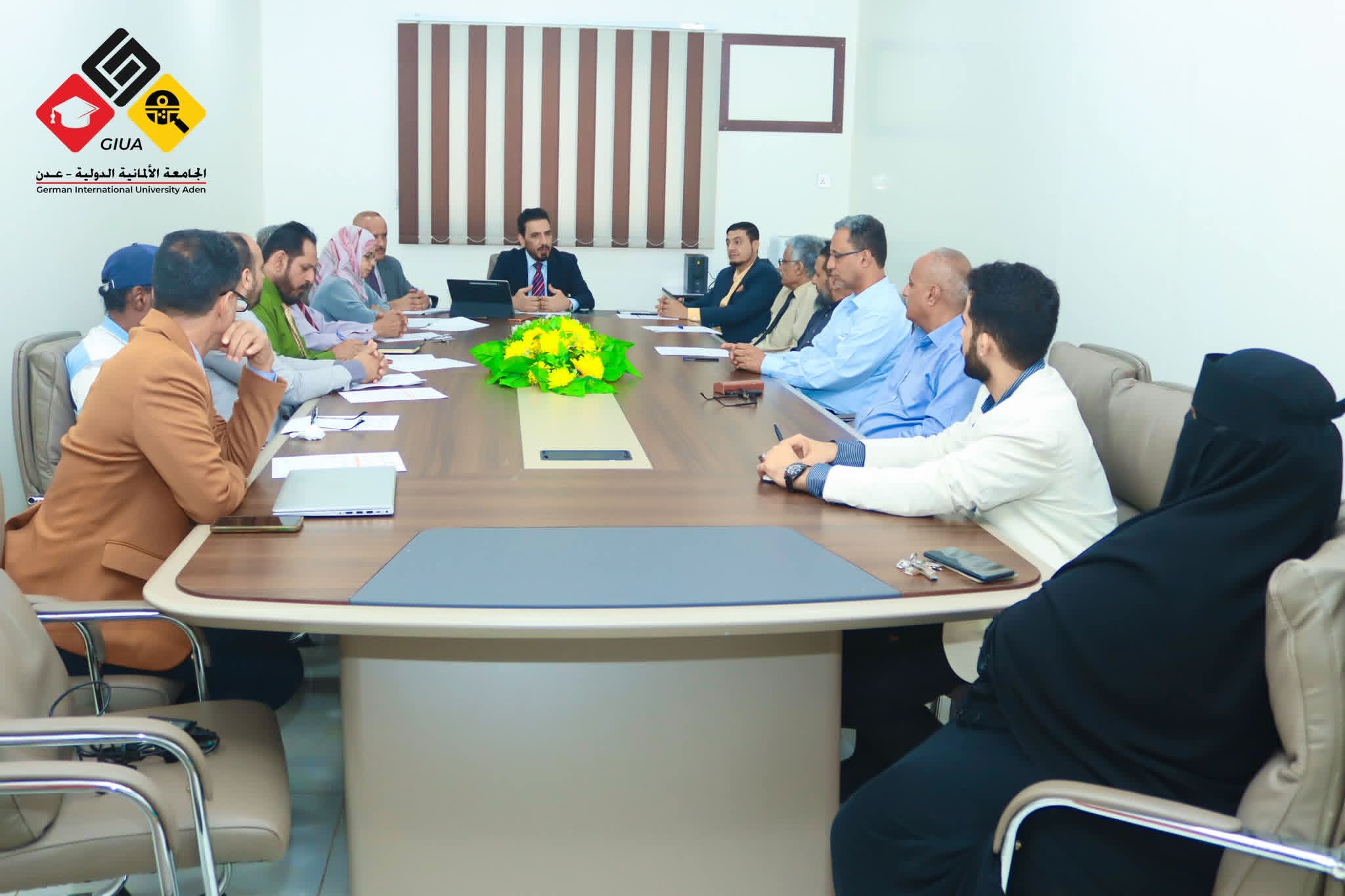 عقد مجلس الجامعة الألمانية الدولية في العاصمة عدن اليوم السبت الموافق 3 يناير 2026م اجتماعا دوريا برئاسة أ.د. عبدالفتاح عباس السعيدي رئيس الجامعة وبحضور الأستاذ محمود بن عزان نائب رئيس مجلس الأمناء، والأستاذ محمد البيشي عضو مجلس الامناء وأ. د. أنيس عبدالله شعفل نائب رئيس الجامعة، أ. مشارك د. عبير جميل أمين عام الجامعة ود. محمد العياشي مدير عام مستشفى عدن الألماني الدولي وكافة اعضاء مجلس الجامعة وذلك للوقوف أمام جملة من القضايا الأكاديمية والتطويرية المدرجة في جدول أعمال الدورة.